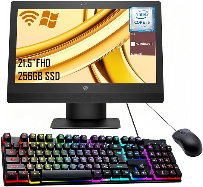 HP ProOne 600 G3 All-in-One Desktop Computer, 21.5" FHD(1920x1080), Core i5-7500 3.4GHz Up to 3.8GHz, 256GB SSD, 8GB RAM, No DVD, USB WiFi+BT, Keyboard and Mouse, Windows 11 Pro (Renewed)