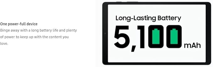 • 8.7", 800 x 1340, 5:3 ratio, WXGA+, TFT, Android 11, One UI 3.1, Face Recognition, 5100mAh Battery
